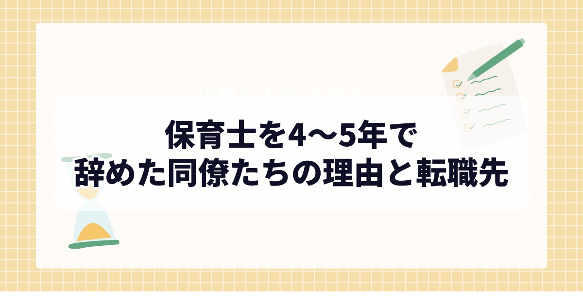 保育士を4〜5年で辞めた同僚たちの理由と転職先|元教諭8年